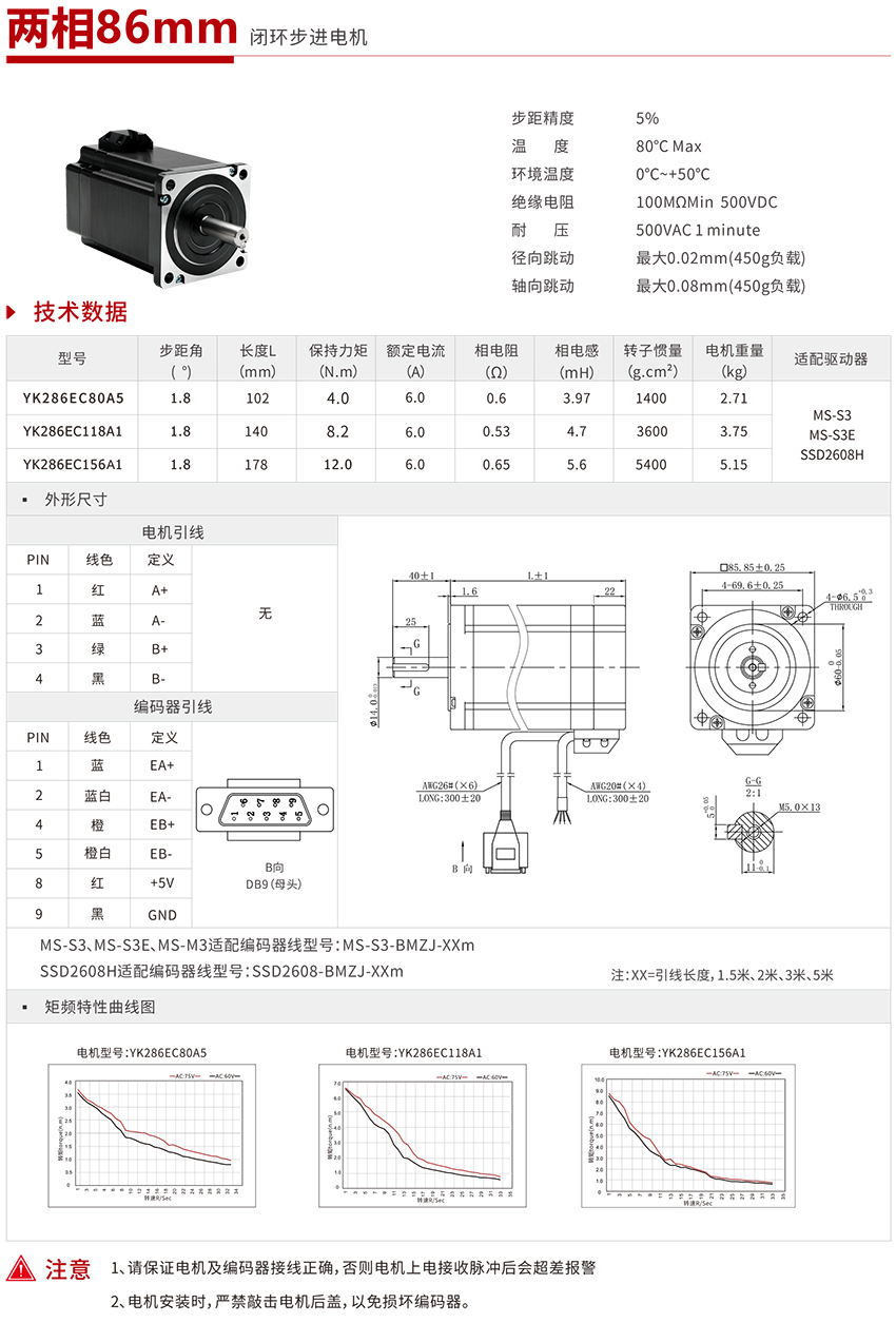 | YK286EC80A5 | 86mm闭环步进电机(3D) | |