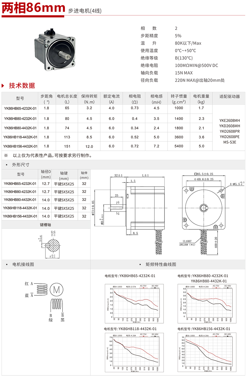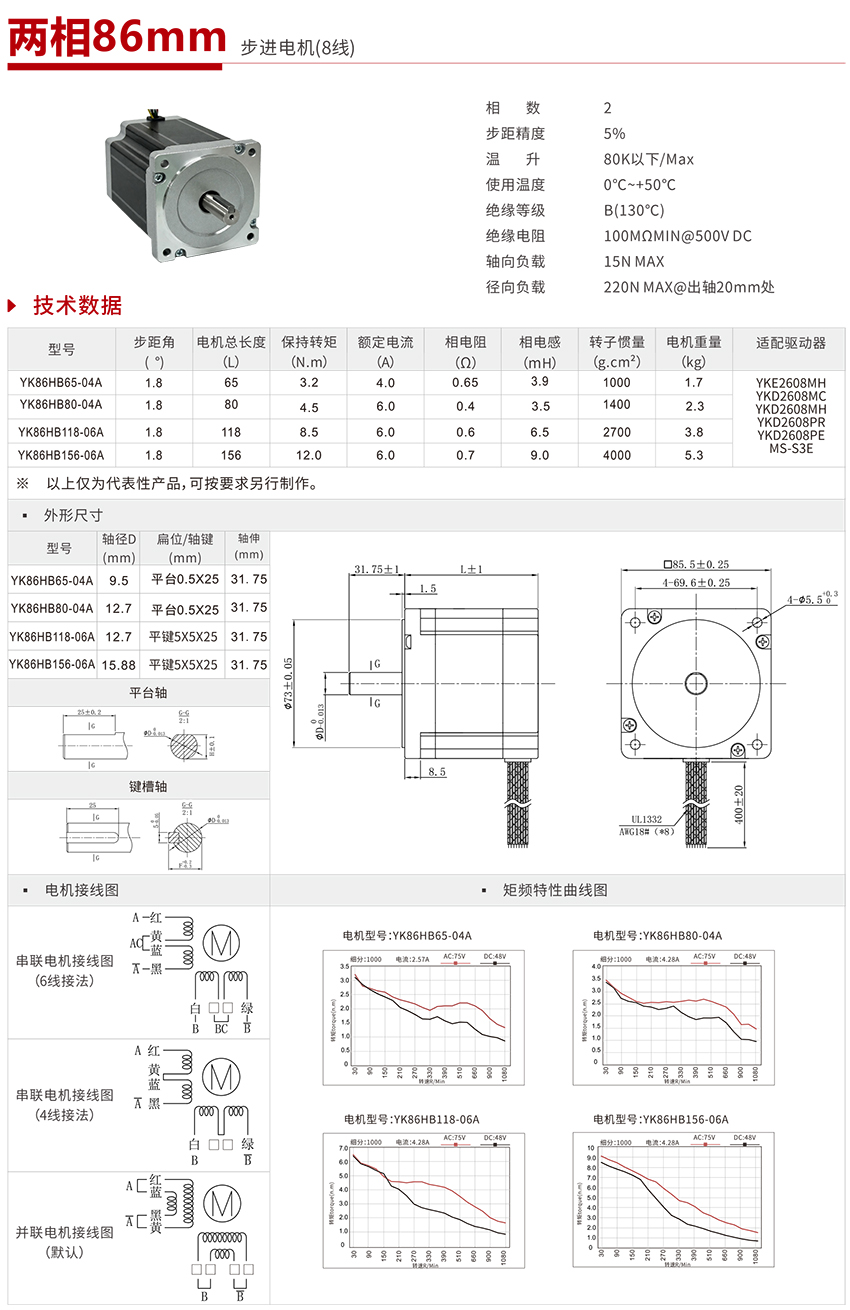| YK86HB65-4232K-01 | 86mm两相步进电机(2D) |