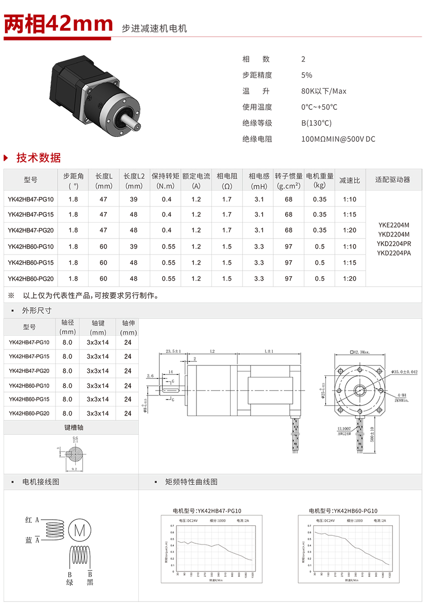| YK42HB47-PG20 | 42mm步进减速机电机(2D) | |